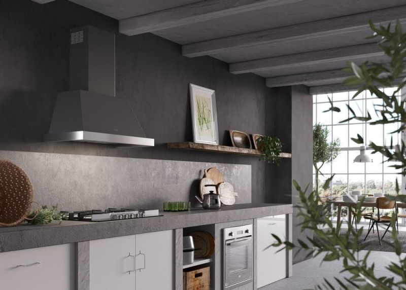 Rustikální komínová digestoř Faber THEA EV8 DG MATT A80 (80 cm) v tmavě šedém matu. Výkonná jednotka EVO, 3 rychlosti + intenzivní odsávání, tichý chod Sound Pro a úsporný LED pásek. Možnost úpravy pro napojení do rekuperace i externí motor. V základu bez rámu. Záruka 5 let.