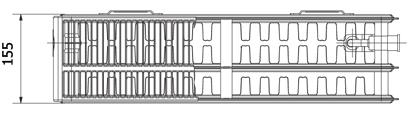 Model RADIK VK je deskové otopné těleso v provedení VENTIL KOMPAKT, které umožňuje pravé spodní připojení na otopnou soustavu s nuceným oběhem. Ze zadní strany jsou přivařeny dvě horní a dolní příchytky, otopná tělesa o délce 1800 mm a delší mají navařena šest příchytek.