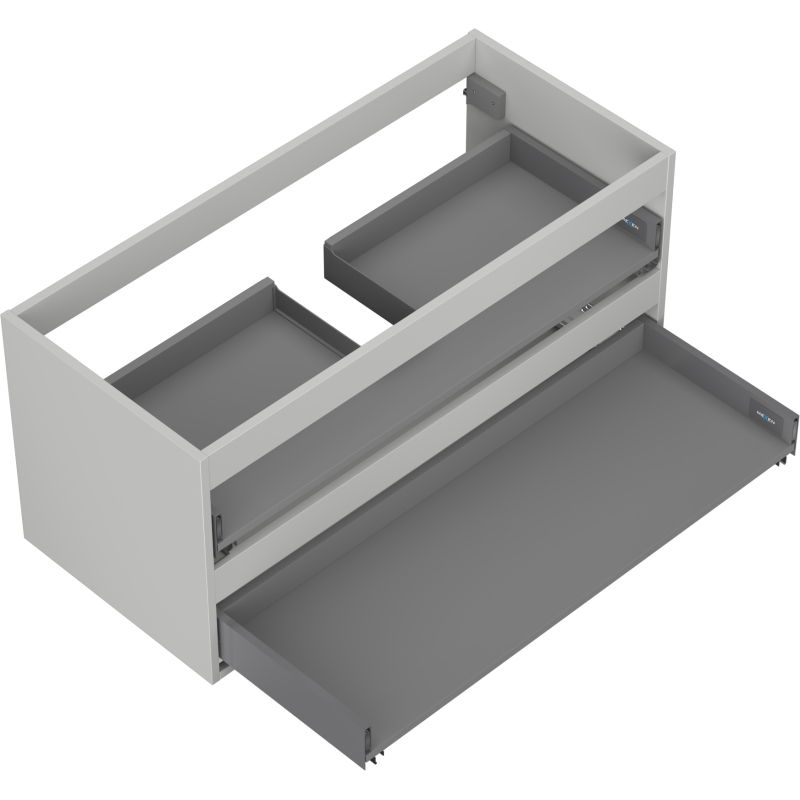 Specifikace produktu: Šířka: 100 cm Hloubka: 44,2 cm Výška: 47 cm Barva: Matně šedá Typ: Závěsné Materiál: Lakovaná deska Počet zásuvek: 2 Vodítka s funkcí tlumeného dovírání Plný výsuv pro snadný přístup k obsahu zásuvky Povrch odolný vůči UV záření Kombinovatelný s dvířky ze série Orio, Rivel Produkt smontovaný