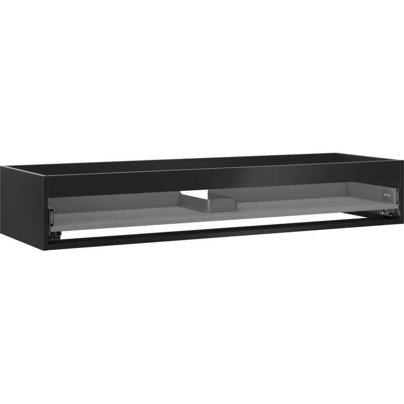 Specifikace produktu: Šířka: 140 cm Hloubka: 44,2 cm Výška: 23,5 cm Barva: Matná černá Typ: Závěsné Materiál: Lakovaná deska Počet zásuvek: 1 Vodítka s funkcí tlumeného dovírání Plný výsuv pro snadný přístup k obsahu zásuvky Povrch odolný vůči UV záření Kombinovatelný s dvířky ze série Orio, Rivel Produkt smontovaný