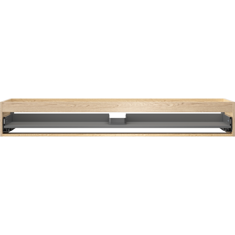 Specifikace produktu: Šířka: 160 cm Hloubka: 44,2 cm Výška: 23,5 cm Barva: Dub Typ: Závěsné Materiál: Karton + PVC fólie Počet zásuvek: 1 Vodítka s funkcí tlumeného dovírání Plný výsuv pro snadný přístup k obsahu zásuvky Povrch odolný vůči UV záření Kombinovatelný s dvířky ze série Orio, Rivel Produkt smontovaný