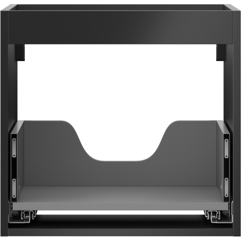 Specifikace produktu: Šířka: 50 cm Hloubka: 44,2 cm Výška: 47 cm Barva: Matná černá Typ: Závěsné Materiál: Lakovaná deska Počet zásuvek: 1 Vodítka s funkcí tlumeného dovírání Plný výsuv pro snadný přístup k obsahu zásuvky Povrch odolný vůči UV záření Kombinovatelný s dvířky ze série Orio, Rivel Produkt smontovaný