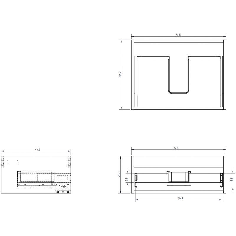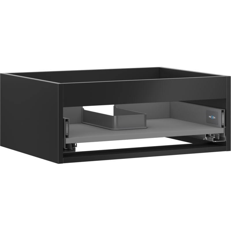 Specifikace produktu: Šířka: 60 cm Hloubka: 44,2 cm Výška: 23,5 cm Barva: Matná černá Typ: Závěsné Materiál: Lakovaná deska Počet zásuvek: 1 Vodítka s funkcí tlumeného dovírání Plný výsuv pro snadný přístup k obsahu zásuvky Povrch odolný vůči UV záření Kombinovatelný s dvířky ze série Orio, Rivel Produkt smontovaný
