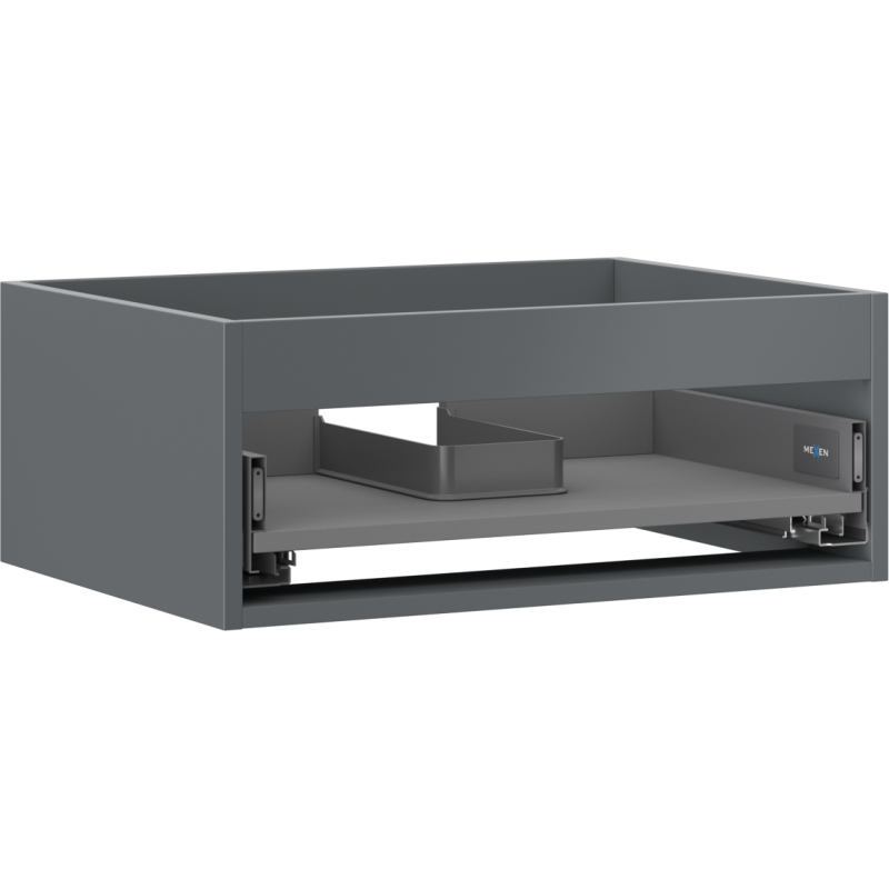 Specifikace produktu: Šířka: 60 cm Hloubka: 44,2 cm Výška: 23,5 cm Barva: Matný grafit Typ: Závěsné Materiál: Lakovaná deska Počet zásuvek: 1 Vodítka s funkcí tlumeného dovírání Plný výsuv pro snadný přístup k obsahu zásuvky Povrch odolný vůči UV záření Kombinovatelný s dvířky ze série Orio, Rivel Produkt smontovaný