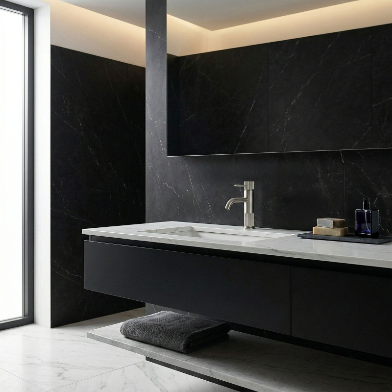 Objevte novou definici luxusu ve své koupelně díky umyvadlové baterii Rea Lungo Stripe. Tato nízká baterie je skutečným mistrovským dílem designu, které spojuje minimalistickou formu s mimořádně efektními detaily. Její jedinečná estetika z ní dělá centrální prvek každé moderní aranžace a dodává interiéru prestiž i vytříbený charakter.Dekorativní rýhování – výrazná, žebrovaná textura na těle a páce přitahuje pozornost a dodává baterii unikátní „šperkový“ vzhledTechnologie povlaku PVD – zaručuje bezchybnou hladkost a extrémní odolnost proti poškrábání i vnějším vlivůmKartáčovaný povrch – elegantní matná úprava jemně rozptyluje světlo a velmi snadno se udržuje čistá bez otisků prstůProvedení z mosazi – materiál nejvyšší kvality zajišťuje dlouhou životnost, těsnost a spolehlivost celé konstrukceDesignový tvar – štíhlé linie a propracované proporce se skvěle hodí k moderním umyvadlům na desku s místem pro baterii i k praktickým poddeskovým umyvadlům Umyvadlová baterie Rea Lungo Stripe je ideální volbou pro milovníky elegantních a designových stylů, od loftu až po moderní klasiku. Díky inovativnímu povlaku a preciznímu rýhování si výrobek zachovává svůj lesk a perfektní vzhled po velmi dlouhou dobu. Volbou tohoto modelu sázíte na nekompromisní kvalitu značky REA i estetiku, která vás bude těšit každý den.