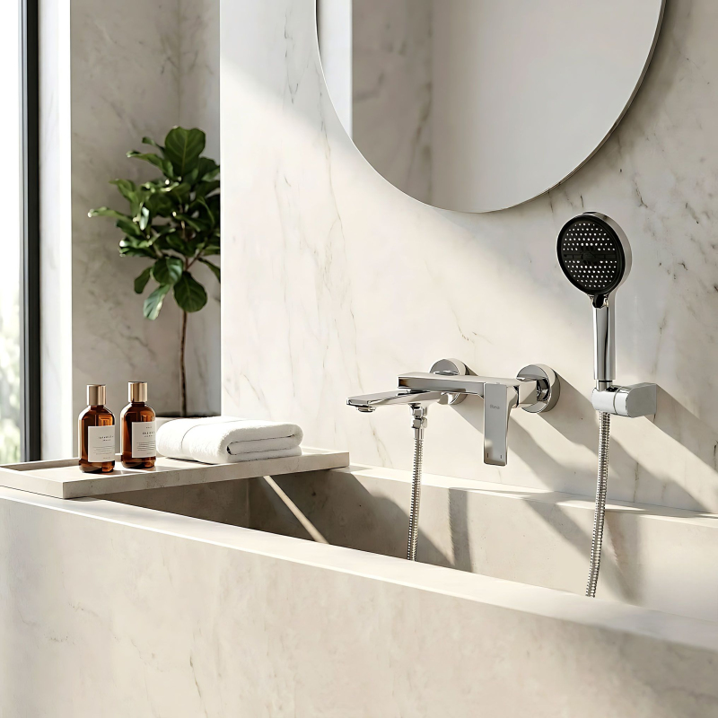 Oceňte eleganci a modernost ve své koupelně díky vanové baterii Rea Prime v barvě, která skvěle doplní zařízení každé koupelny. Je to ideální spojení stylu a funkčnosti, které nadchne každého uživatele hledajícího řešení prémiové třídy. Baterie je vyrobena z těch nejlepších materiálů, takže nejen podtrhne jedinečný design vašeho interiéru, ale také zajistí spolehlivost a pohodlí používání na nejvyšší úrovni po mnoho let.Pohyblivý výtok – zajišťuje nebývalou volnost při koupeli a usnadňuje udržování čistoty v okolí vany, protože umožňuje přesné směrování proudu vody.Multifunkční sprchová hlavice – je vybavena regulací proudu vody, která umožňuje přizpůsobit intenzitu sprchování individuálním preferencím.Praktická funkce bidetky – integrované řešení ve sprchové hlavici výrazně zvyšuje standard osobní hygieny a usnadňuje každodenní domácí práce, například plnění vysokých nádob.Prémiový design – štíhlá, propracovaná linie baterie a moderní tvar dělají ze sestavy centrální dekorativní prvek každé stylové koupelny.Odolná ochranná povrchová úprava – pokročilá technologie nanášení barvy zaručuje odolnost proti poškrábání a korozi a zachovává bezchybný vzhled armatury. Vanová baterie Rea Prime je volbou pro osoby, které si cení luxusního komfortu a nekompromisní estetiky. Dokonalá v každém detailu, vyrobená s důrazem na nejvyšší kvalitu, představuje ideální doplněk vybavení moderní koupelny. Díky pevné konstrukci a promyšlené ergonomii si můžete být jisti, že vám tato sestava zajistí pohodlí a spolehlivost každý den a bude investicí do krásy vašeho domova.