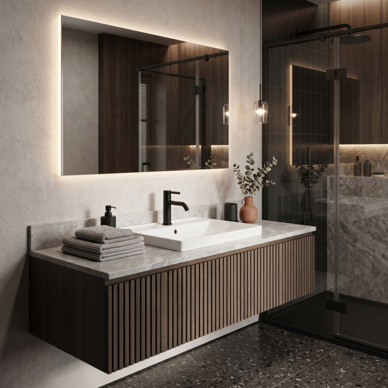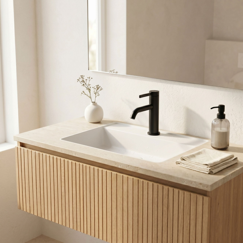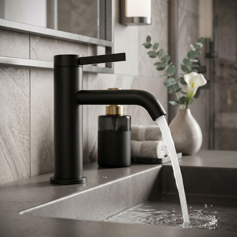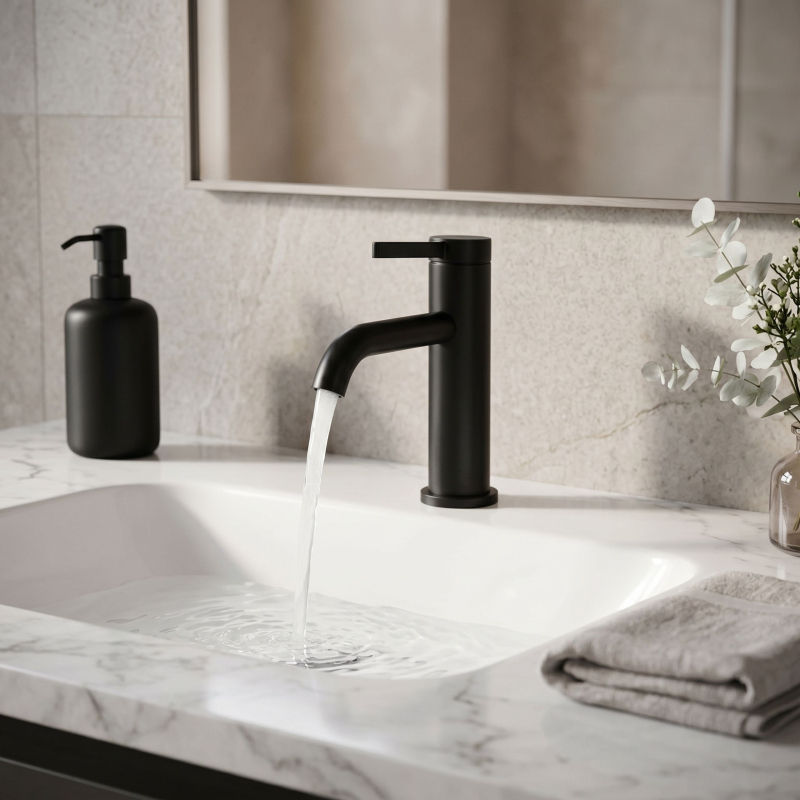 Vneste do své koupelny ucelený a elegantní akcent díky nízké umyvadlové baterii Rea Rivo v povrchové úpravě Black. Tento kompaktní model byl navržen pro klasická umyvadla, kde záleží na pohodlí každodenního používání a propracovaném vzhledu celé umyvadlové zóny. Válcové tělo, jemně zaoblený výtok a minimalistická rukojeť tvoří moderní, lehkou formu, která skvěle zapadá jak do světlých, přirozených interiérů, tak do elegantnějších aranžmá.Nízká konstrukce – optimální výška baterie zajišťuje pohodlné používání u standardních umyvadel a dobře se přizpůsobí klasickým montážním řešením.Barva Black – hladký saténový povrch nanesený metodou galvanizace (electroplating) dodává baterii elegantní vzhled, zaručuje vysokou odolnost povlaku a usnadňuje udržení estetiky každý den.Zaoblený výtok – jemně tvarovaná forma působí moderně a harmonicky se doplňuje s koupelnovou keramikou.Perlátor – provzdušňuje proud vody, čímž zvyšuje komfort používání a podporuje hospodárnější spotřebu vody.Páková baterie – intuitivní ovládání jednou rukou umožňuje rychle nastavit požadovanou teplotu a intenzitu proudu.Nízká umyvadlová baterie Rea Rivo Black je vynikající volbou pro lidi, kteří hledají funkční a estetická řešení pro každodenní použití. Její kompaktní forma vypadá u umyvadla skvěle a hladký saténový Black dodává interiéru výrazný a nadčasový akcent. Je to model, který vám umožní vytvořit ucelený, moderní a pohodlný koupelnový prostor.