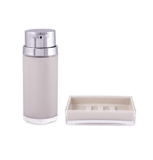 Sérii REA je tvořena dávkovačem tekutého mýdla (250 ml), kelímkem na zubní kartáčky, mýdelníkme a WC štětkou.