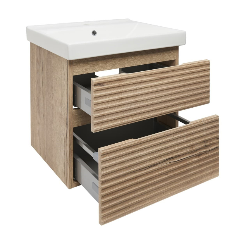 Koupelnová skříňka 2 zásuvková s umyvadlem Naturel Savona 58x53x44,8 cm dub Halifax mat SAVONA260DHU1