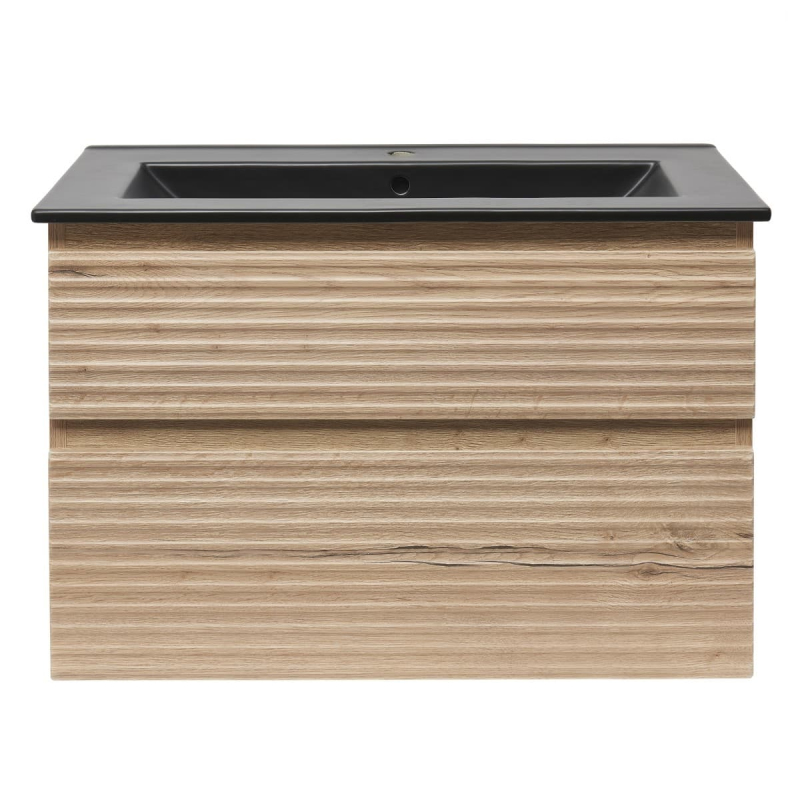 Závěsná koupelnová skříňka s keramickým umyvadlem v dekoru dub halifax s matným povrchem o rozměru 78x53x44,8 cm. Povrch v provedení lamino.