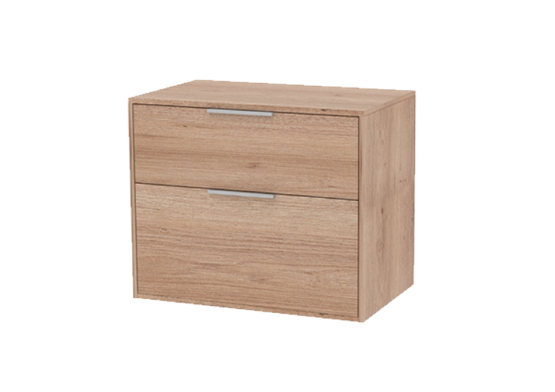 Závěsná koupelnová skříňka bez umyvadla v dekoru dub o rozměru 78,5x56,5x45,5 cm. Povrch v provedení lamino. S plnovýsuvem a dotahem.