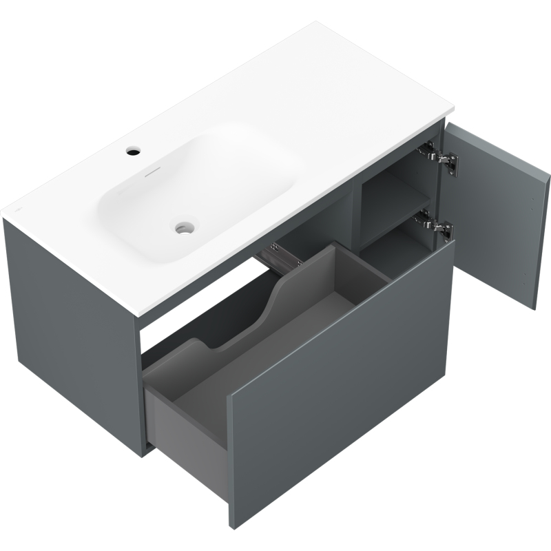 Koupelnová skříňka Mexen Orio 100 cm s levým umyvadlem Vela, 1S, 1D, grafit matný/bílá matná - 91A13-10047-3-BBFF66-W23L01