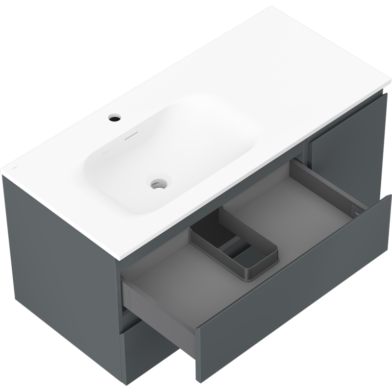 Koupelnová skříňka Mexen Orio 100 cm s levým umyvadlem Vela, 2S, 1D, matný grafit/matná bílá - 91A13-10047-3-BBFFF66-W23L01