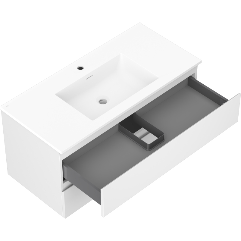 Koupelnová skříňka Mexen Orio 100 cm s umyvadlem Otis, 2 zásuvky, matná bílá - 91A10-10047-2-BFF01-W18M01