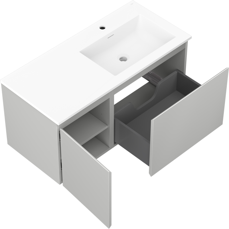 Koupelnová skříňka Mexen Orio 100 cm s umyvadlem Otis pravé, 1S, 1D, matná šedá/matná bílá - 91A13-10047-3-BBFF62-W18P01