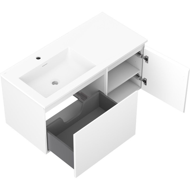 Koupelnová skříňka Mexen Orio 100 cm s umyvadlem Otis vlevo, 1S, 1D, matná bílá - 91A13-10047-3-BBFF01-W18L01