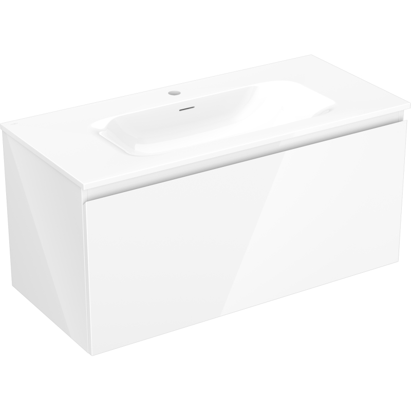 Koupelnová skříňka Mexen Orio 100 cm s umyvadlem Vela, 1 zásuvka, lesklá bílá - 91A10-10047-1-BF00-W23M00