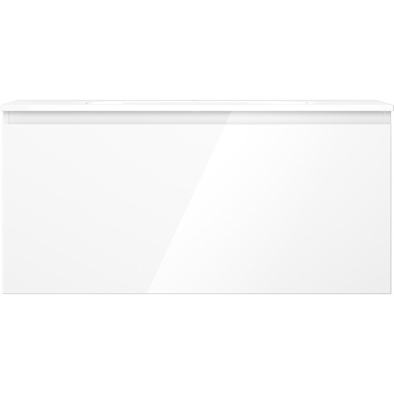 Specifikace produktu: Rozměry skříňky: Šířka: 100 cm Hloubka: 46 cm Výška: 47 cm Barva korpusu: Lesklá bílá Materiál korpusu: Lakovaná deska Barva čela: Lesklá bílá Materiál čela: Lakovaná MDF deska Struktura čela: Hladká Počet zásuvek: 1 Prostorná zásuvka s funkcí tichého dovírání Povrch odolný vůči UV záření Rozměry umyvadla: Šířka: 101 cm Hloubka: 46,5 cm Výška: 16,5 cm Barva umyvadla: Lesklá bílá Materiál umyvadla: Konglomerát Otvor pro přepad: Ano Otvor pro baterii: Ano Smontovaný výrobek