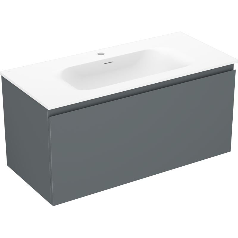 Specifikace produktu: Rozměry skříňky: Šířka: 100 cm Hloubka: 46 cm Výška: 47 cm Barva korpusu: Matný grafit Materiál korpusu: Lakovaná deska Barva čela: Matný grafit Materiál čela: Lakovaná MDF deska Struktura čela: Hladká Počet zásuvek: 1 Prostorná zásuvka s funkcí tlumeného dovírání Povrch odolný vůči UV záření Rozměry umyvadla: Šířka: 101 cm Hloubka: 46,5 cm Výška: 16,5 cm Barva umyvadla: Matná bílá Materiál umyvadla: Konglomerát Otvor pro přepad: Ano Otvor pro baterii: Ano Smontovaný výrobek