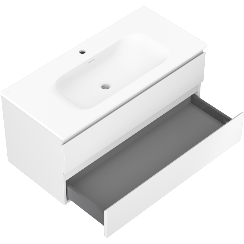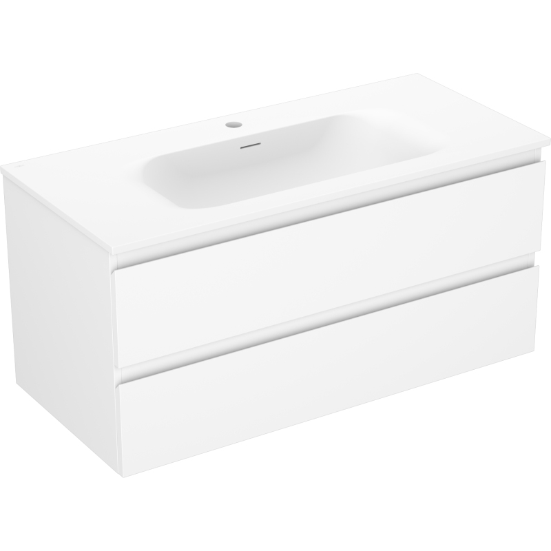 Koupelnová skříňka Mexen Orio 100 cm s umyvadlem Vela, 2 zásuvky, matná bílá - 91A10-10047-2-BFF01-W23M01