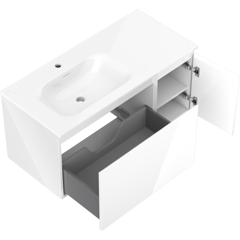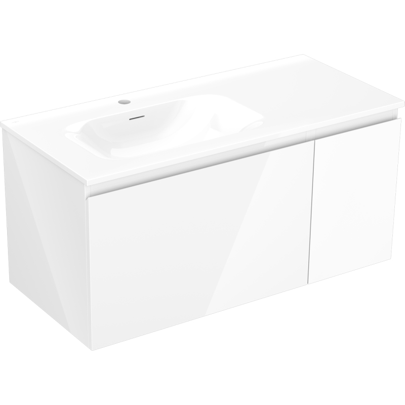 Koupelnová skříňka Mexen Orio 100 cm s umyvadlem Vela levým, 1S, 1D, bílý lesk - 91A13-10047-3-BBFF00-W23L00