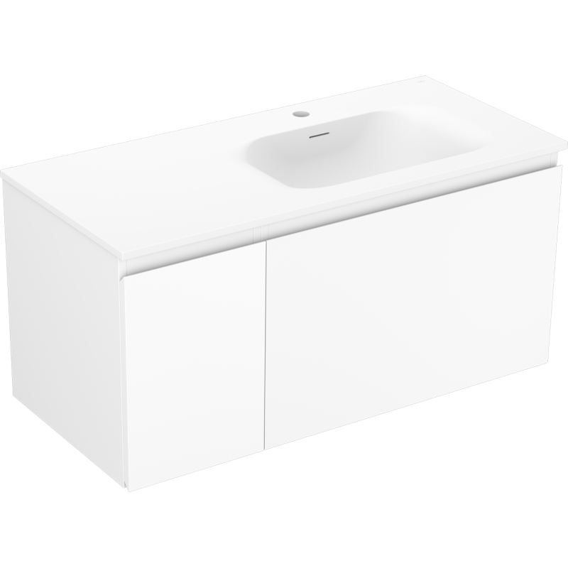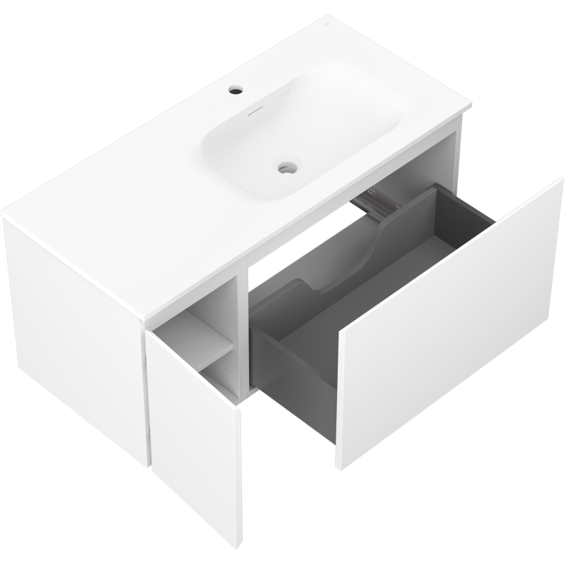 Koupelnová skříňka Mexen Orio 100 cm s umyvadlem Vela pravá, 1S, 1D, matná bílá - 91A13-10047-3-BBFF01-W23P01