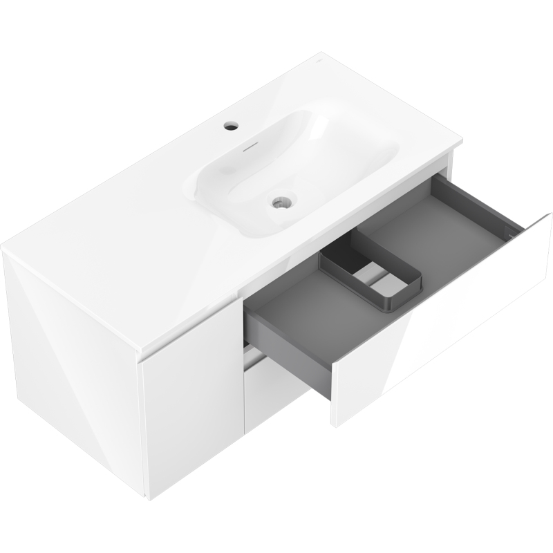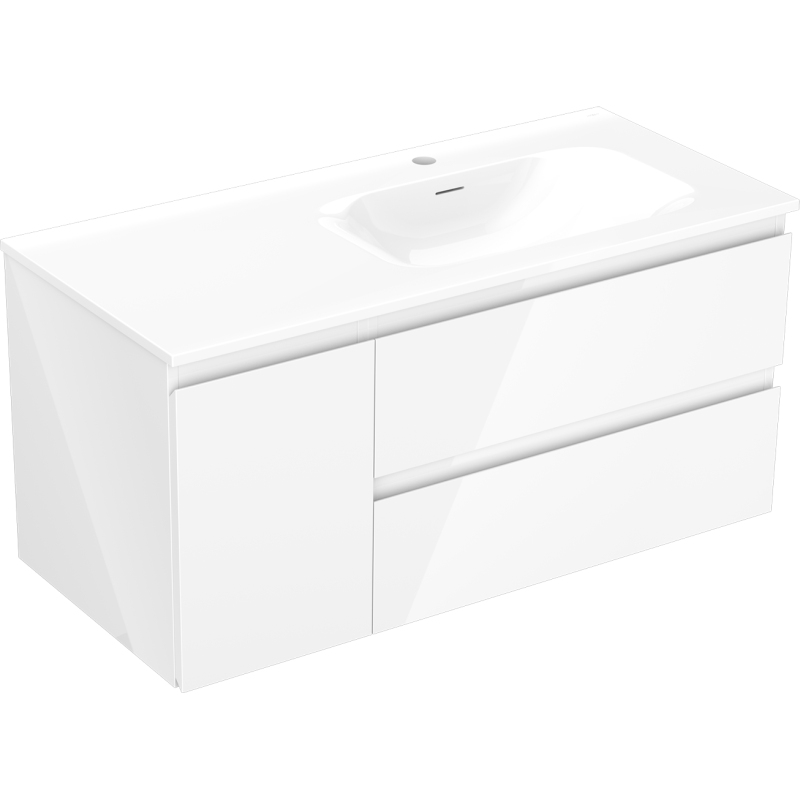 Koupelnová skříňka Mexen Orio 100 cm s umyvadlem Vela pravá, 2S, 1D, bílý lesk - 91A13-10047-3-BBFFF00-W23P00
