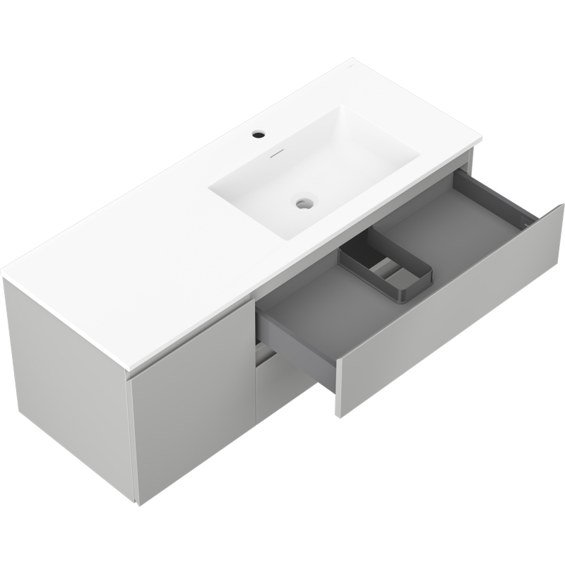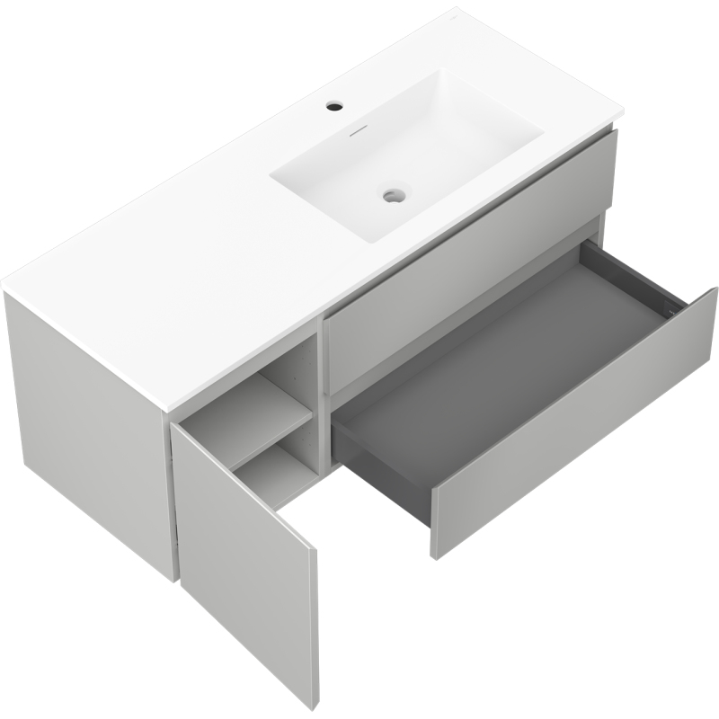 Koupelnová skříňka Mexen Orio 120 cm s umyvadlem Otis pravé, 2S, 1D, matná šedá/matná bílá - 91A13-12047-3-BBFFF62-W18P01