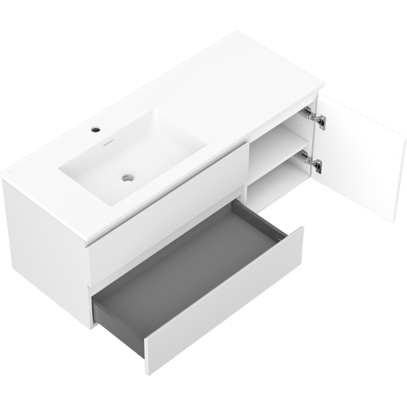 Koupelnová skříňka Mexen Orio 120 cm s umyvadlem Otis vlevo, 2S, 1D, matná bílá - 91A13-12047-3-BBFFF01-W18L01