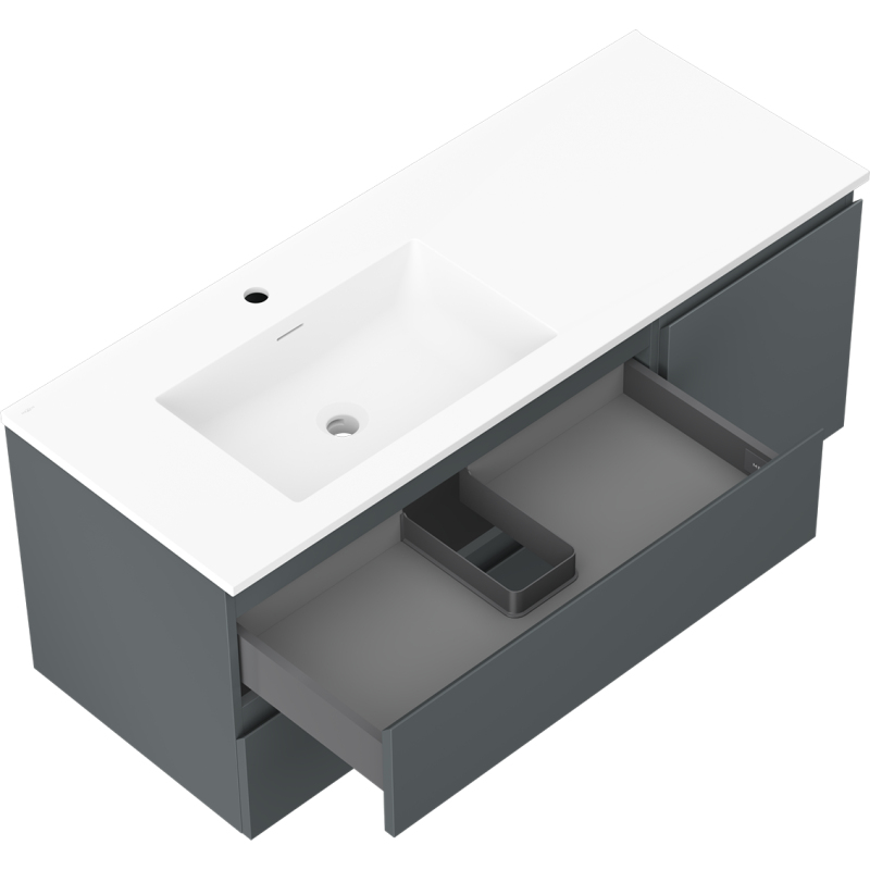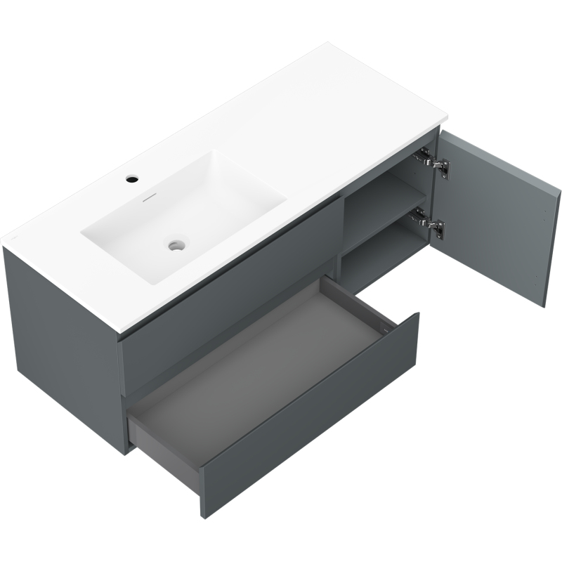 Koupelnová skříňka Mexen Orio 120 cm s umyvadlem Otis vlevo, 2S, 1D, matný grafit/matná bílá - 91A13-12047-3-BBFFF66-W18L01