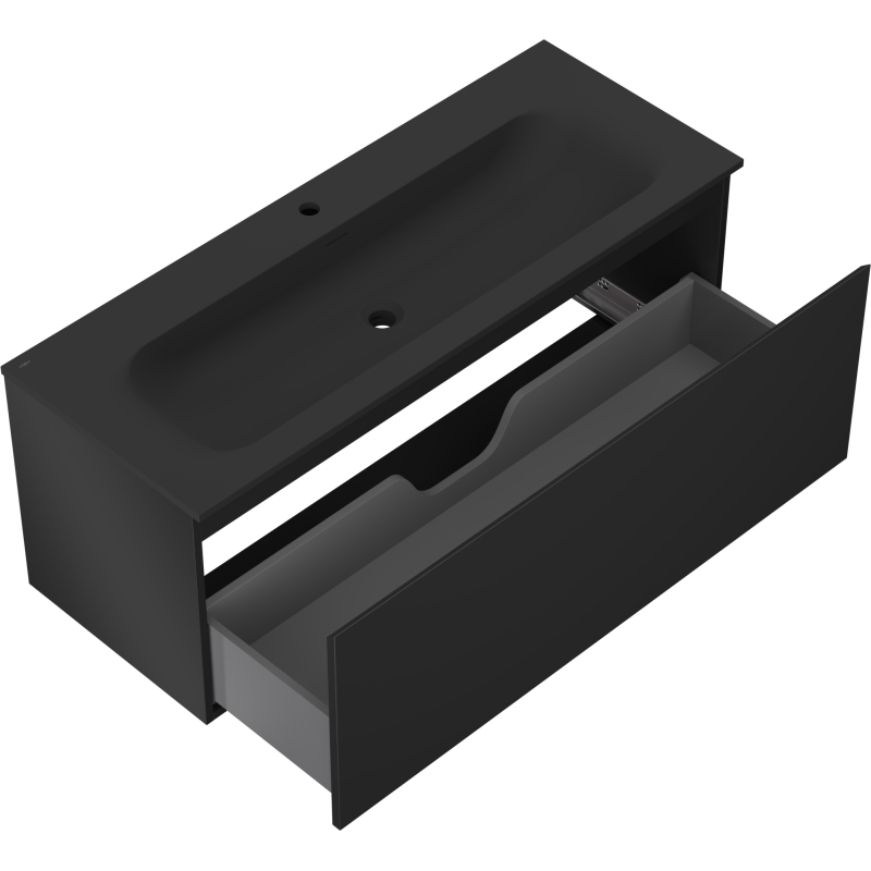 Koupelnová skříňka Mexen Orio 120 cm s umyvadlem Vela, 1 zásuvka, matná černá - 91A10-12047-1-BF71-W23M71