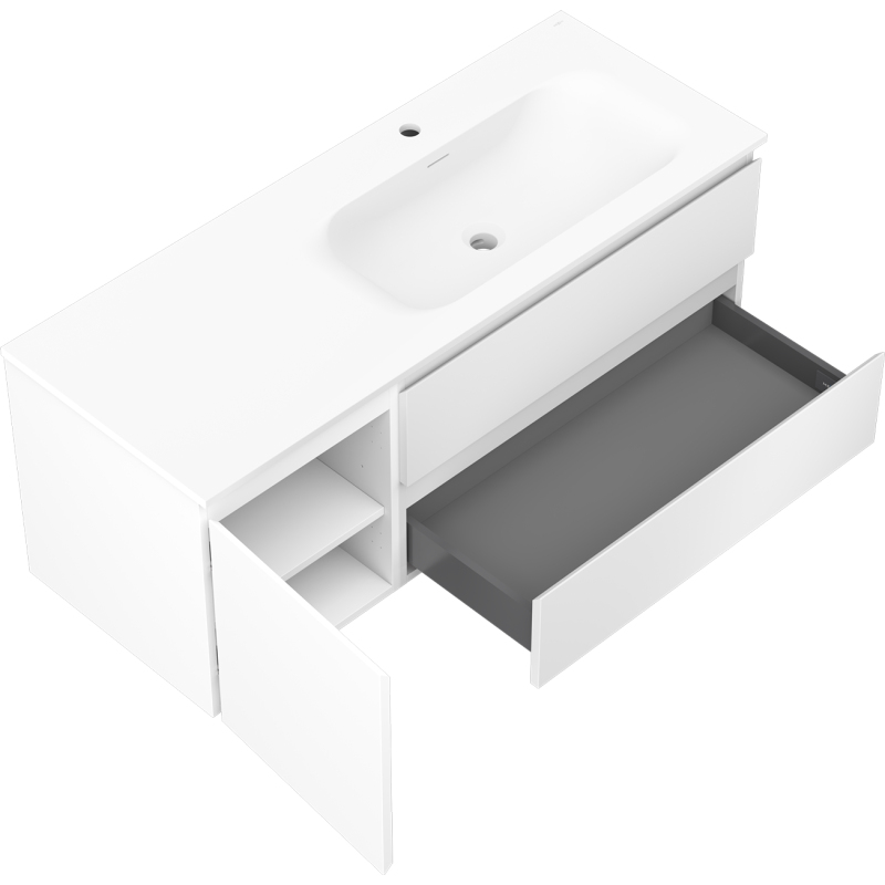 Koupelnová skříňka Mexen Orio 120 cm s umyvadlem Vela pravá, 2S, 1D, matná bílá - 91A13-12047-3-BBFFFF01-W23P01