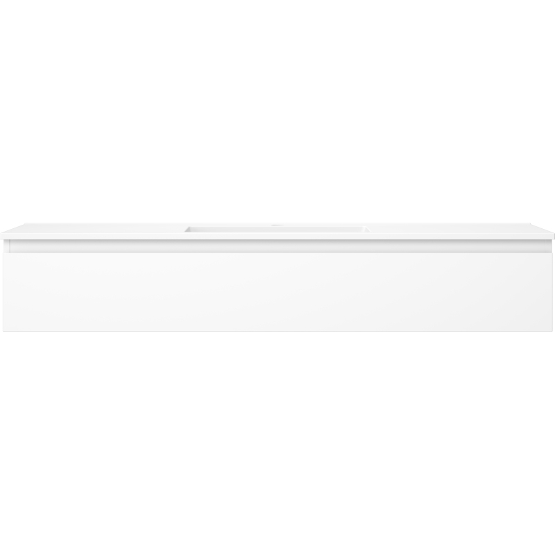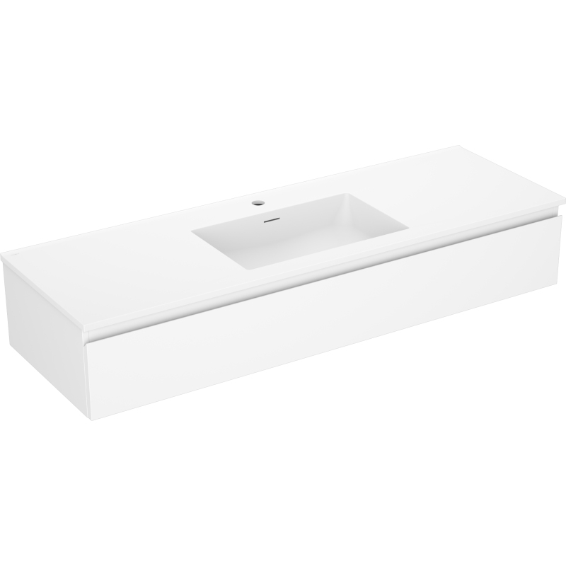 Specifikace produktu: Rozměry skříňky: Šířka: 140 cm Hloubka: 46 cm Výška: 23,5 cm Barva korpusu: Matná bílá Materiál korpusu: Lakovaná deska Barva čela: Matná bílá Materiál čela: Lakovaná MDF deska Struktura čela: Hladká Počet zásuvek: 1 Prostorná zásuvka s funkcí tichého dovírání Povrch odolný vůči UV záření Rozměry umyvadla: Šířka: 141 cm Hloubka: 46,5 cm Výška: 16,5 cm Barva umyvadla: Matná bílá Materiál umyvadla: Konglomerát Otvor pro přepad: Ano Otvor pro baterii: Ano Smontovaný výrobek