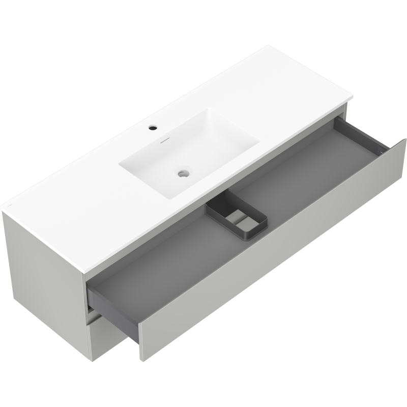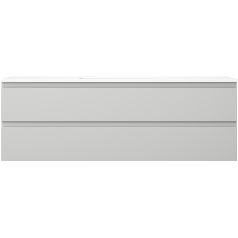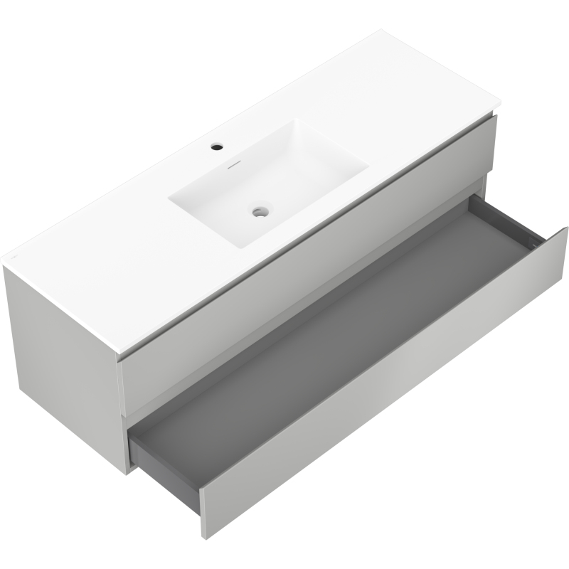 Specifikace produktu: Rozměry skříňky: Šířka: 140 cm Hloubka: 46 cm Výška: 47 cm Barva korpusu: Matně šedá Materiál korpusu: Lakovaná deska Barva čela: Matně šedá Materiál čela: Lakovaná MDF deska Struktura čela: Hladká Počet zásuvek: 2 Prostorná zásuvka s funkcí tichého dovírání Povrch odolný vůči UV záření Rozměry umyvadla: Šířka: 141 cm Hloubka: 46,5 cm Výška: 16,5 cm Barva umyvadla: Matně bílá Materiál umyvadla: Konglomerát Otvor pro přepad: Ano Otvor pro baterii: Ano Smontovaný výrobek