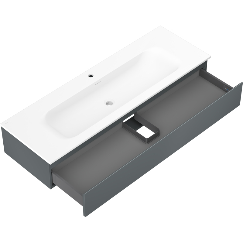 Specifikace produktu: Rozměry skříňky: Šířka: 140 cm Hloubka: 46 cm Výška: 23,5 cm Barva korpusu: Matný grafit Materiál korpusu: Lakovaná deska Barva čela: Matný grafit Materiál čela: Lakovaná MDF deska Struktura čela: Hladká Počet zásuvek: 1 Prostorná zásuvka s funkcí tlumeného dovírání Povrch odolný vůči UV záření Rozměry umyvadla: Šířka: 141 cm Hloubka: 46,5 cm Výška: 16,5 cm Barva umyvadla: Matná bílá Materiál umyvadla: Konglomerát Otvor pro přepad: Ano Otvor pro baterii: Ano Smontovaný výrobek