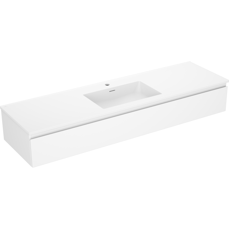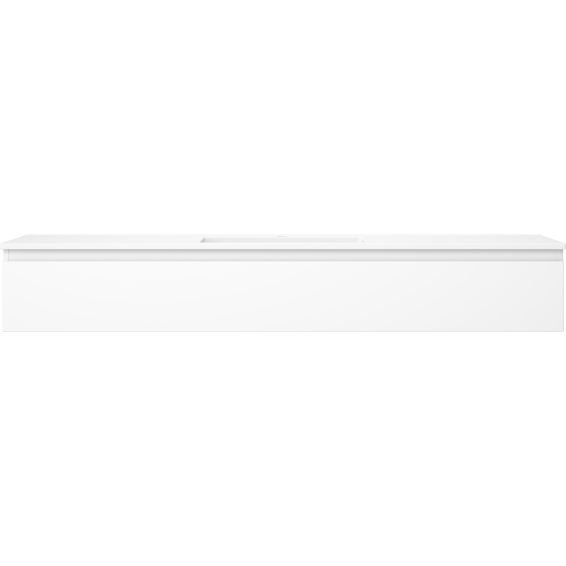 Specifikace produktu: Rozměry skříňky: Šířka: 160 cm Hloubka: 46 cm Výška: 23,5 cm Barva korpusu: Matná bílá Materiál korpusu: Lakovaná deska Barva čela: Matná bílá Materiál čela: Lakovaná MDF deska Struktura čela: Hladká Počet zásuvek: 1 Prostorná zásuvka s funkcí tichého dovírání Povrch odolný vůči UV záření Rozměry umyvadla: Šířka: 161 cm Hloubka: 46,5 cm Výška: 16,5 cm Barva umyvadla: Matná bílá Materiál umyvadla: Konglomerát Otvor pro přepad: Ano Otvor pro baterii: Ano Smontovaný výrobek