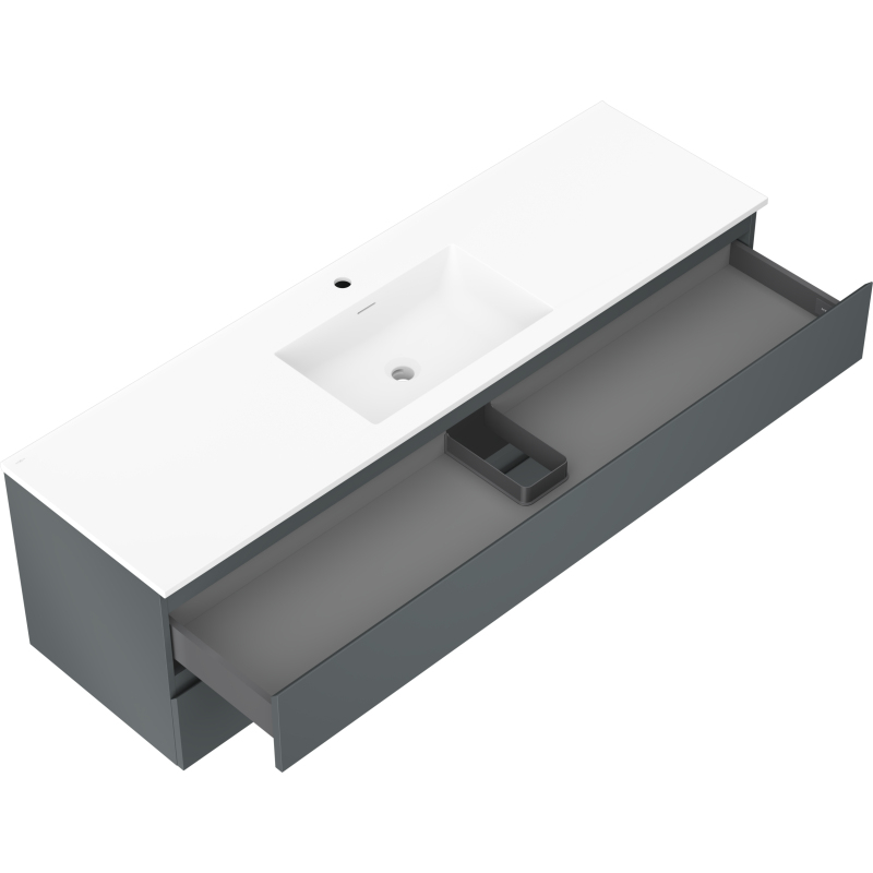 Specifikace produktu: Rozměry skříňky: Šířka: 160 cm Hloubka: 46 cm Výška: 47 cm Barva korpusu: Matný grafit Materiál korpusu: Lakovaná deska Barva čela: Matný grafit Materiál čela: Lakovaná MDF deska Struktura čela: Hladká Počet zásuvek: 2 Prostorná zásuvka s funkcí tlumeného dovírání Povrch odolný vůči UV záření Rozměry umyvadla: Šířka: 161 cm Hloubka: 46,5 cm Výška: 16,5 cm Barva umyvadla: Matná bílá Materiál umyvadla: Konglomerát Otvor pro přepad: Ano Otvor pro baterii: Ano Smontovaný výrobek