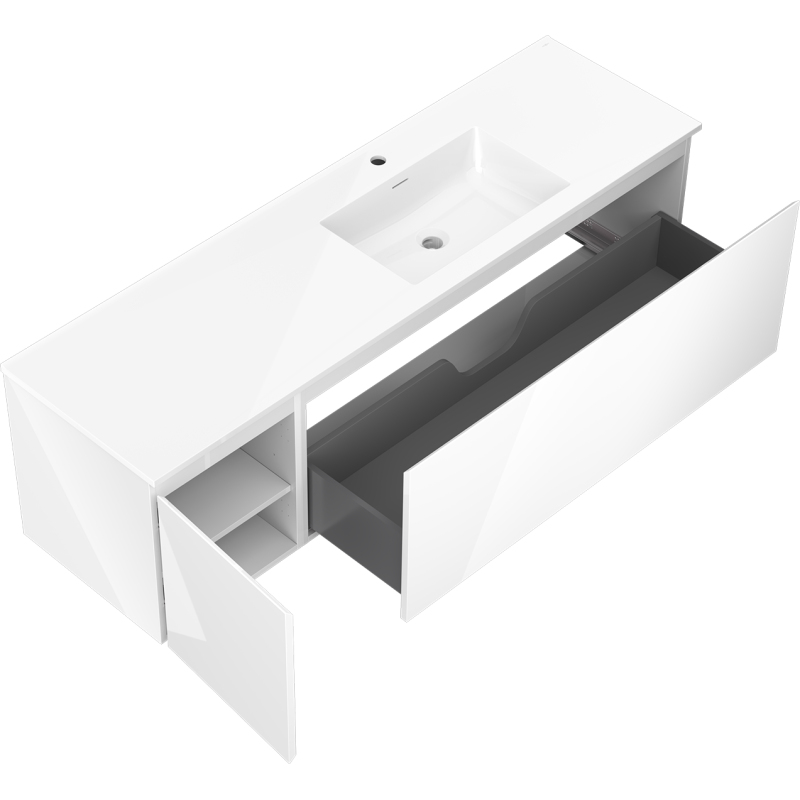 Koupelnová skříňka Mexen Orio 160 cm s umyvadlem Otis pravá, 1S, 1D, bílý lesk - 91A13-16047-3-BBFF00-W18P00