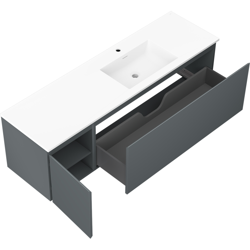 Koupelnová skříňka Mexen Orio 160 cm s umyvadlem Otis pravé, 1S, 1D, matný grafit/matná bílá - 91A13-16047-3-BBFF66-W18P01