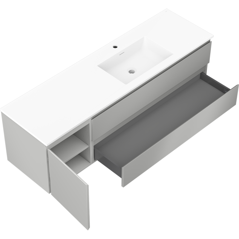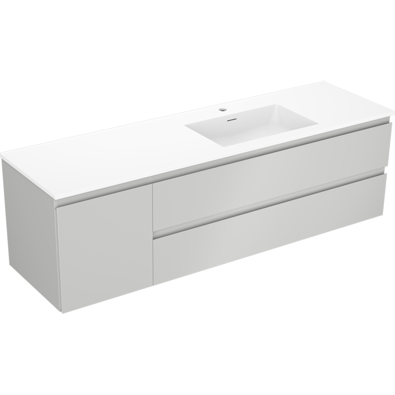 Koupelnová skříňka Mexen Orio 160 cm s umyvadlem Otis pravé, 2S, 1D, matná šedá/matná bílá - 91A13-16047-3-BBFFF62-W18P01