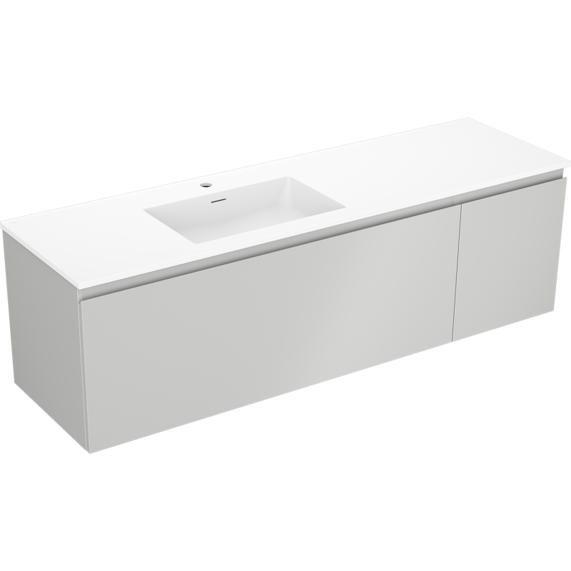 Koupelnová skříňka Mexen Orio 160 cm s umyvadlem Otis vlevo, 1S, 1D, matná šedá/matná bílá - 91A13-16047-3-BBFF62-W18L01