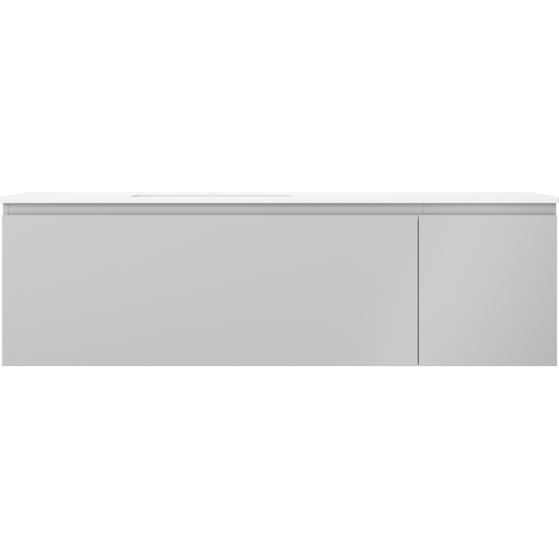 Specifikace produktu: Rozměry skříňky: Šířka: 160 cm Hloubka: 46 cm Výška: 47 cm Sada obsahuje: Zásuvková skříňka pod umyvadlo: Šířka: 120 cm Hloubka: 46 cm Výška: 47 cm Barva korpusu: Matně šedá Materiál korpusu: Lakovaná deska Barva čela: Matně šedá Materiál čela: Lakovaná MDF deska Konstrukce čela: Hladká Počet zásuvek: 1 Prostorná zásuvka s funkcí tlumeného dovírání Umyvadlová skříňka s dvířky: Šířka: 40 cm Výška: 47 cm Hloubka: 46 cm Barva korpusu: Matně šedá Materiál korpusu: Lakovaná deska Barva čela: Matně šedá Materiál čela: Lakovaná MDF deska Konstrukce čela: Hladká Počet dvířek: 1 1 police Panty s funkcí tlumeného dovírání Univerzální montáž dvířek (levé/pravé) Povrch odolný vůči UV záření Umyvadlo: Šířka: 161 cm Hloubka: 46,5 cm Výška: 16,5 cm Barva umyvadla: Matně bílá Materiál umyvadla: Konglomerát Otvor pro přepad: Ano Otvor pro baterii: Ano Produkt smontovaný