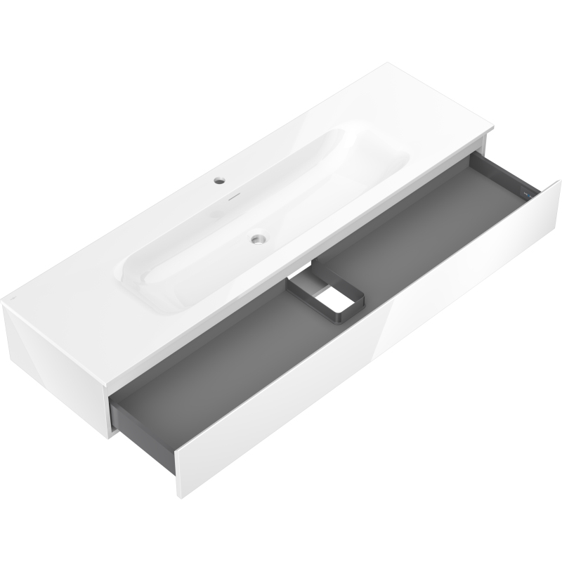 Specifikace produktu: Rozměry skříňky: Šířka: 160 cm Hloubka: 46 cm Výška: 23,5 cm Barva korpusu: Lesklá bílá Materiál korpusu: Lakovaná deska Barva čela: Lesklá bílá Materiál čela: Lakovaná MDF deska Struktura čela: Hladká Počet zásuvek: 1 Prostorná zásuvka s funkcí tlumeného dovírání Povrch odolný vůči UV záření Rozměry umyvadla: Šířka: 161 cm Hloubka: 46,5 cm Výška: 16,5 cm Barva umyvadla: Lesklá bílá Materiál umyvadla: Konglomerát Otvor pro přepad: Ano Otvor pro baterii: Ano Smontovaný výrobek