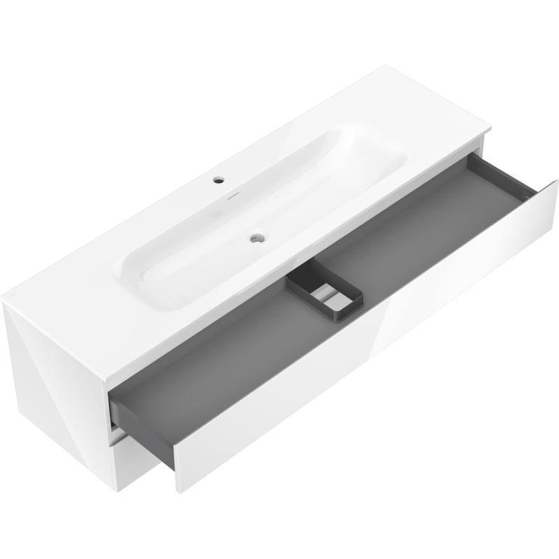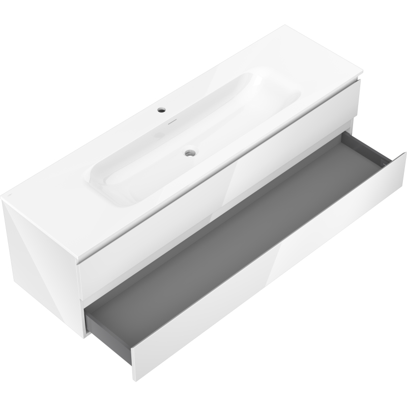 Koupelnová skříňka Mexen Orio 160 cm s umyvadlem Vela, 2 zásuvky, lesklá bílá - 91A10-16047-2-BFF00-W23M00