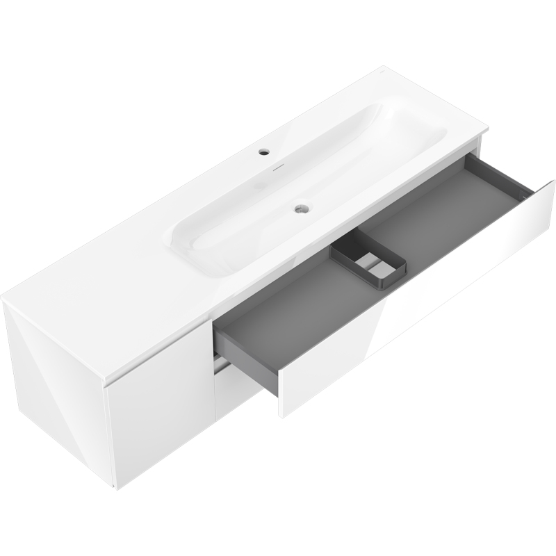 Koupelnová skříňka Mexen Orio 160 cm s umyvadlem Vela pravá, 2S, 1D, bílý lesk - 91A13-16047-3-BBFFF00-W23P00
