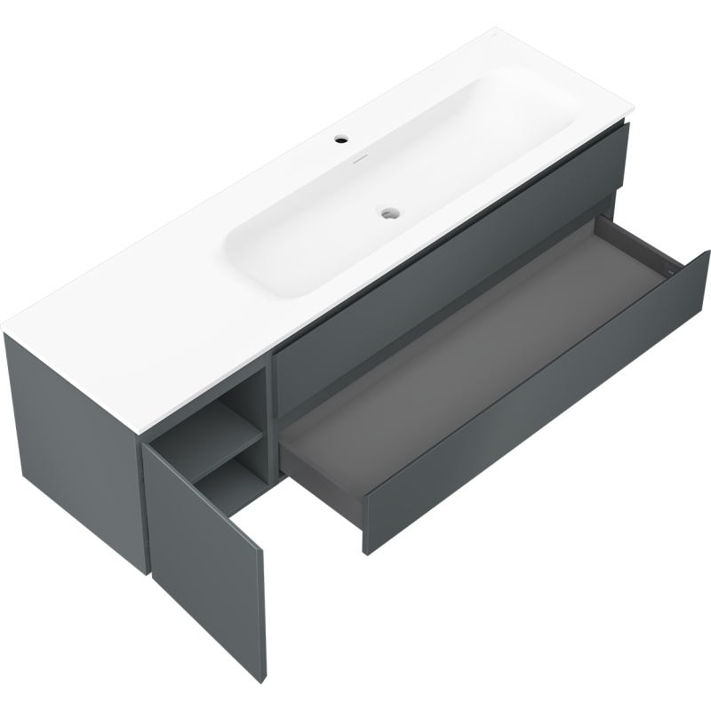 Koupelnová skříňka Mexen Orio 160 cm s umyvadlem Vela pravá, 2S, 1D, grafit matný/bílá matná - 91A13-16047-3-BBFFF66-W23P01