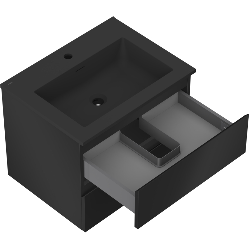 Koupelnová skříňka Mexen Orio 60 cm s umyvadlem Otis, 2 zásuvky, matná černá - 91A10-06047-2-BFF71-W18M71
