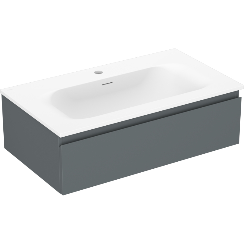 Specifikace produktu: Rozměry skříňky: Šířka: 80 cm Hloubka: 46 cm Výška: 23,5 cm Barva korpusu: Matný grafit Materiál korpusu: Lakovaná deska Barva čela: Matný grafit Materiál čela: Lakovaná MDF deska Struktura čela: Hladká Počet zásuvek: 1 Prostorná zásuvka s funkcí tlumeného dovírání Povrch odolný vůči UV záření Rozměry umyvadla: Šířka: 81 cm Hloubka: 46,5 cm Výška: 16,5 cm Barva umyvadla: Matná bílá Materiál umyvadla: Konglomerát Otvor pro přepad: Ano Otvor pro baterii: Ano Smontovaný výrobek