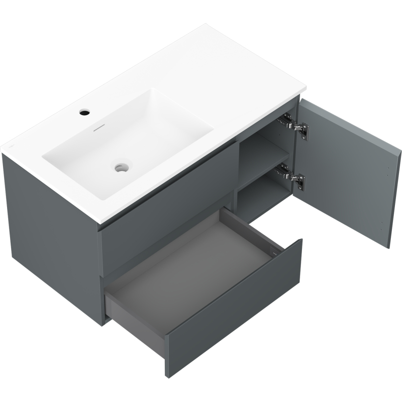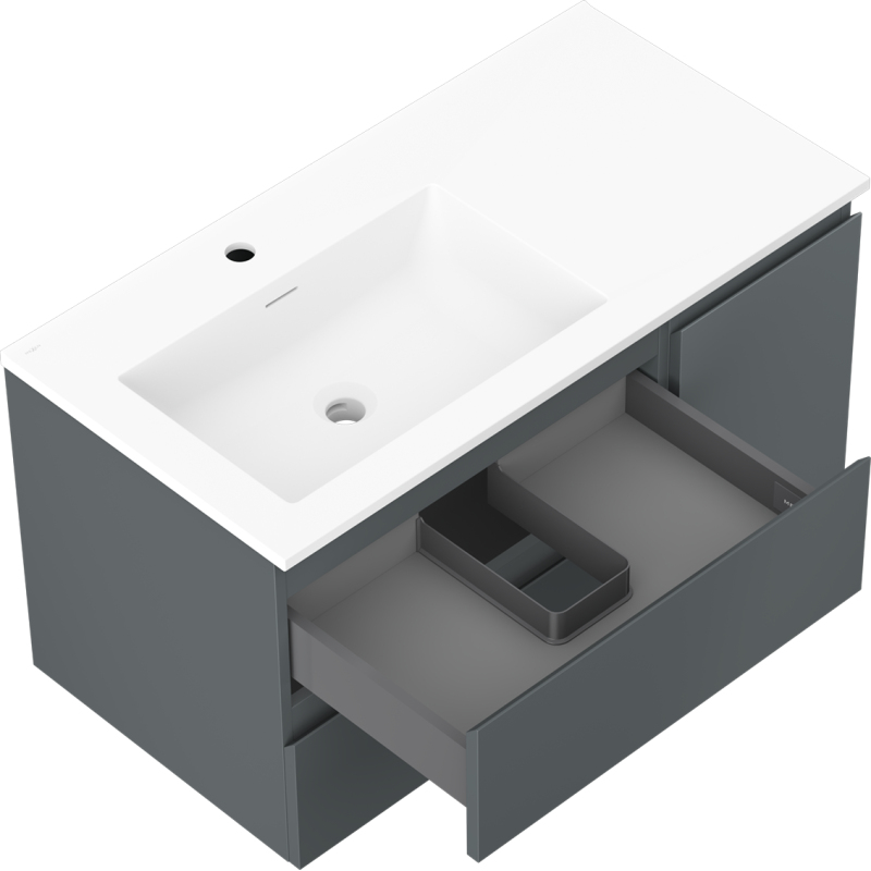 Koupelnová skříňka Mexen Orio 90 cm s umyvadlem Otis levým, 2S, 1D, matný grafit/matná bílá - 91A13-09047-3-BBFFF66-W18L01