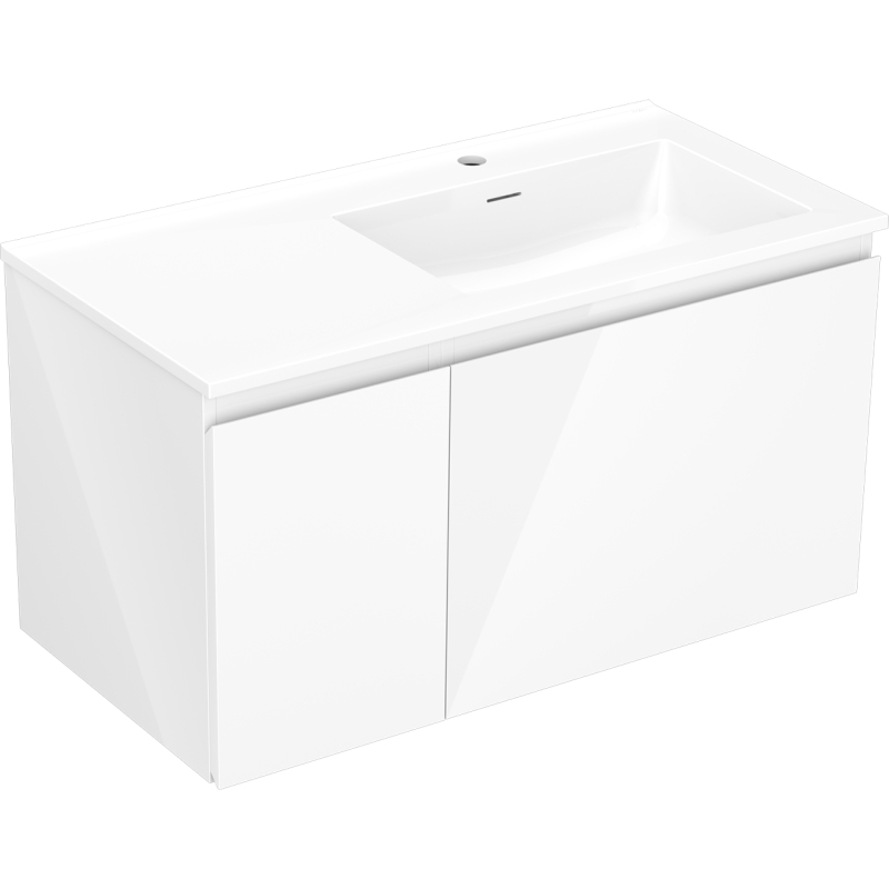Koupelnová skříňka Mexen Orio 90 cm s umyvadlem Otis pravé, 1S, 1D, bílý lesk - 91A13-09047-3-BBFF00-W18P00